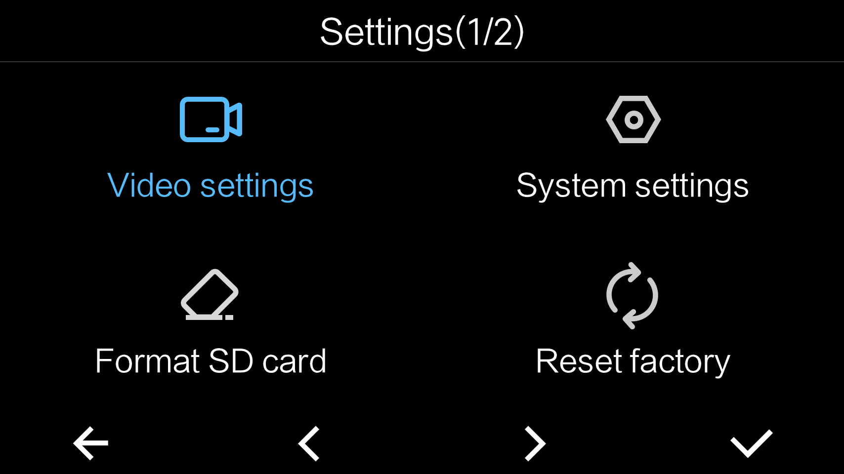 - Emergency video: Allows you to adjust the dash cam’s sensitivity level for recording emergency videos. The higher the sensitivity, the easier it is to trigger a video recording. If this function is disabled, the dash cam will not record emergency videos.